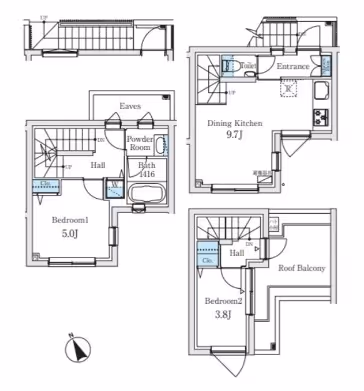 AGRATIO TERRACE Ebisu AGRATIO TERRACE Ebisu 213 this 2DK apartment offers 53㎡ of well-organized living space on the 2nd floor of a modern, four-story building completed in 2023. The layout provides a practical separation between the dining/kitchen area and two private rooms, making it suitable for both singles and couples seeking flexibility in their home environment. Large windows invite natural light into each room, while the efficient floor plan ensures comfortable daily living. Contemporary finishes and thoughtful design details contribute to a sense of calm and functionality throughout the residence. Standard initial costs apply, in line with recent Tokyo rentals.