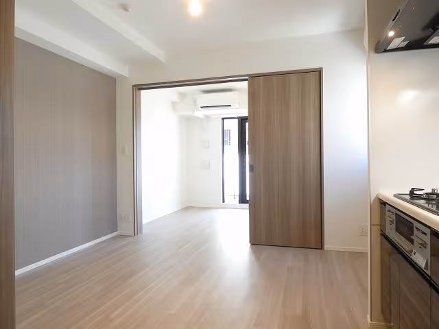 This 1SLDK apartment offers 42㎡ of contemporary living space on the 2nd floor of a four-story building completed in 2025. The layout provides a well-defined separation between the living-dining area, bedroom, and a flexible service room that can be adapted to your needs. Large windows draw in natural light, creating a bright and inviting atmosphere throughout the home. Modern finishes and practical design details ensure a comfortable daily experience, while standard initial costs apply.