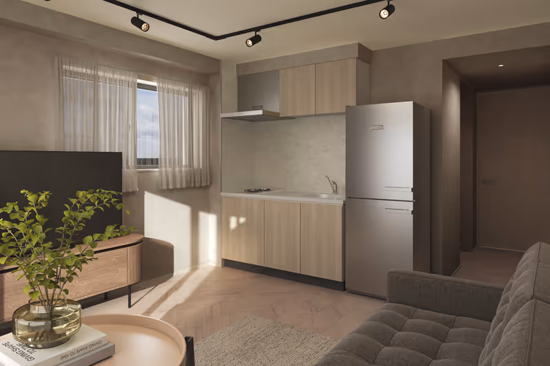 GranDuo Yoga 7 305 is a contemporary 1LDK apartment offering 35㎡ of thoughtfully designed living space on the 3rd floor of a four-story building completed in 2026. The layout provides a comfortable separation between the bedroom and the open-plan living, dining, and kitchen area, making it ideal for singles or couples seeking both privacy and functionality. Large windows invite ample natural light, creating a bright and welcoming atmosphere throughout the home. Modern fixtures and efficient use of space ensure everyday comfort, while standard initial costs apply for moving in.
