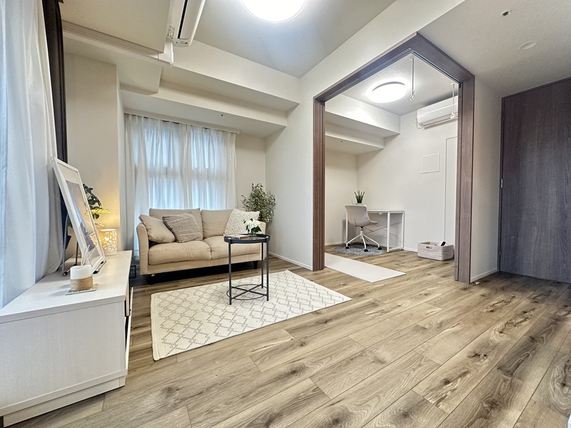 This 2LDK apartment offers 52㎡ of thoughtfully designed living space on the 12th floor of a modern 15-story building completed in 2024. The layout provides a comfortable separation between the living-dining area and two private bedrooms, creating a practical environment for both relaxation and entertaining. Large windows invite ample natural light, enhancing the sense of openness throughout the home. Modern fixtures and finishes contribute to a fresh, comfortable atmosphere, while standard initial costs apply for moving in. The building’s recent construction ensures up-to-date amenities and a secure, well-maintained environment.