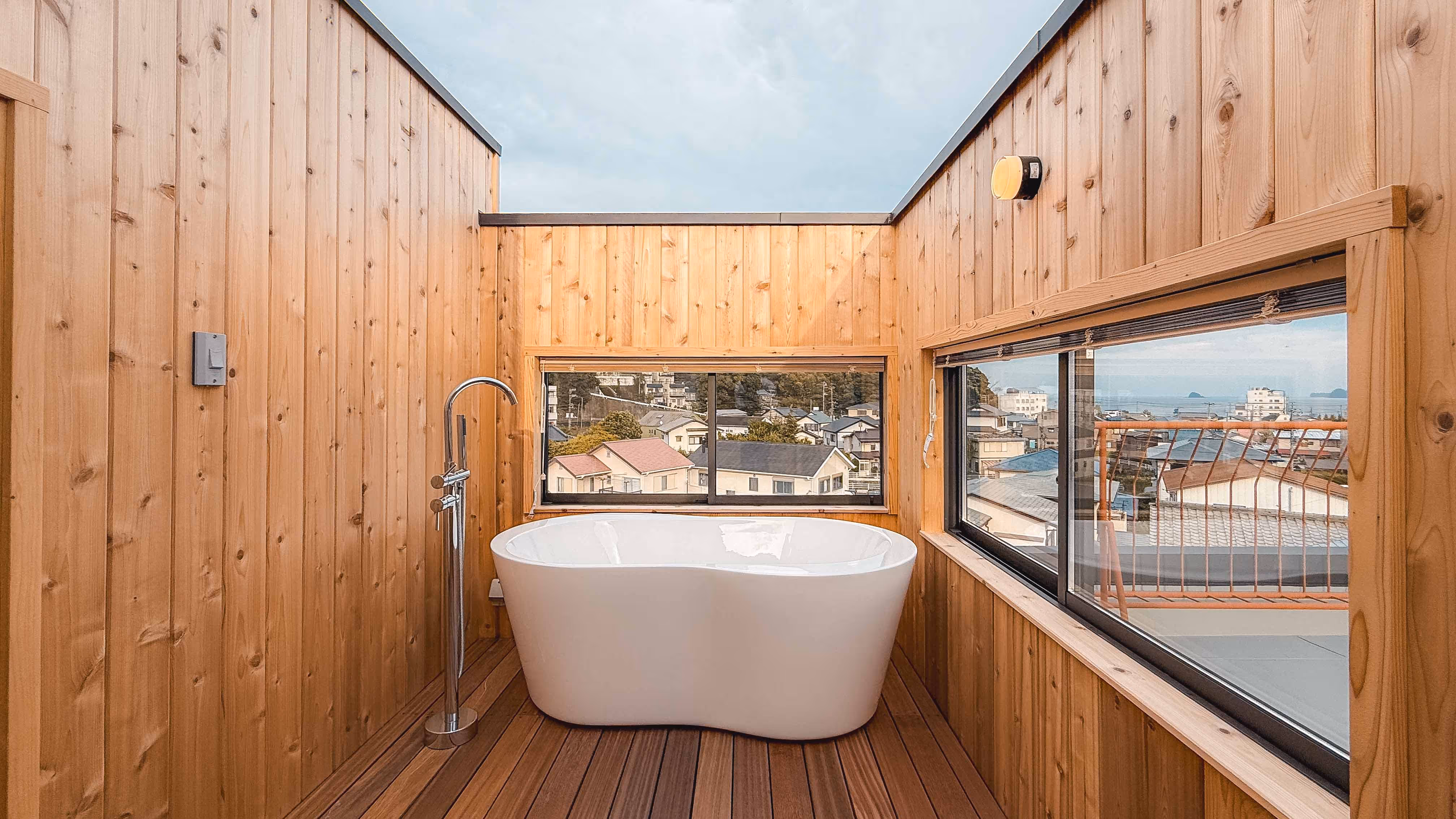 Palco Marino – Ocean View Residence in Usami, Ito City This modern three-story reinforced concrete house offers stunning panoramic ocean views from its spacious rooftop terrace. Palco Marino combines serene seaside living with the comfort of contemporary design. Located just a 7-minute walk from JR Usami Station, the property features 4 bedrooms + 1 storage room + living/dining/kitchen + garage on a total land area of 706㎡, with a building area of 212.68㎡. Enjoy the convenience of a 69㎡ garage, perfect for multiple cars or creative space. The highlight of this residence is its rooftop sauna — an ideal place to unwind while overlooking the beautiful Sagami Bay. Large windows fill the interior with natural light, and the elevated position provides a peaceful atmosphere surrounded by greenery and sea breeze. Nearby, you’ll find supermarkets, convenience stores, and local amenities within a short walk, making this property perfect as both a vacation home or permanent seaside residence.