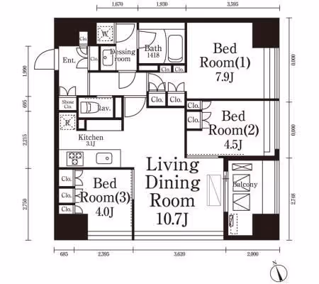 This 3LDK apartment offers 69㎡ of well-organized living space on the 12th floor of a 15-story building completed in 2005. The thoughtful layout separates private bedrooms from the central living and dining area, providing both openness for gatherings and privacy for relaxation. Large windows on a high floor invite ample natural light, creating a bright and airy atmosphere throughout the home. The practical design ensures efficient use of space, with modern fixtures and finishes that support comfortable daily living. Residents benefit from a secure building environment and the convenience of elevator access. Standard initial costs and contract terms apply.