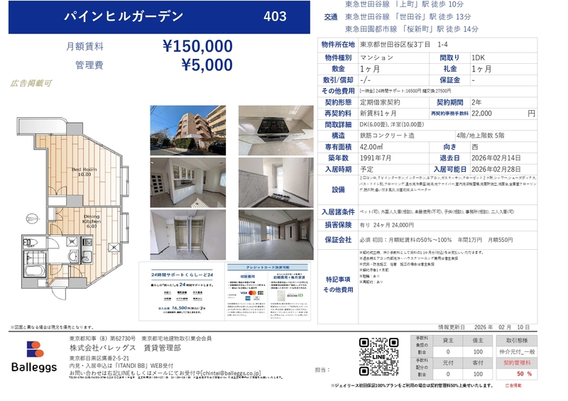 Pine Hill Garden 403 is a 1DK apartment offering 42㎡ of practical living space on the 4th floor of a 5-story building completed in 1991. The layout provides a clear separation between the bedroom and dining-kitchen area, making it ideal for those seeking both privacy and functionality within a compact footprint. Large windows invite natural light into the main living spaces, creating a bright and comfortable atmosphere throughout the day. The apartment’s design supports an efficient urban lifestyle, and standard initial costs apply for the lease.