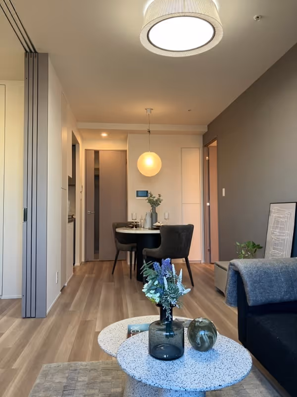 Season Flats Oimachi 1203 is a modern 2LDK apartment offering 55㎡ of well-designed living space on the 12th floor of a 14-story building completed in 2025. The layout provides a comfortable separation between the living-dining area and two private bedrooms, creating an efficient and versatile environment for both relaxation and daily routines. Large windows invite natural light throughout the home, while the elevated position ensures a sense of openness and privacy. Contemporary fixtures and finishes contribute to a refined atmosphere, and standard initial costs apply for moving in.