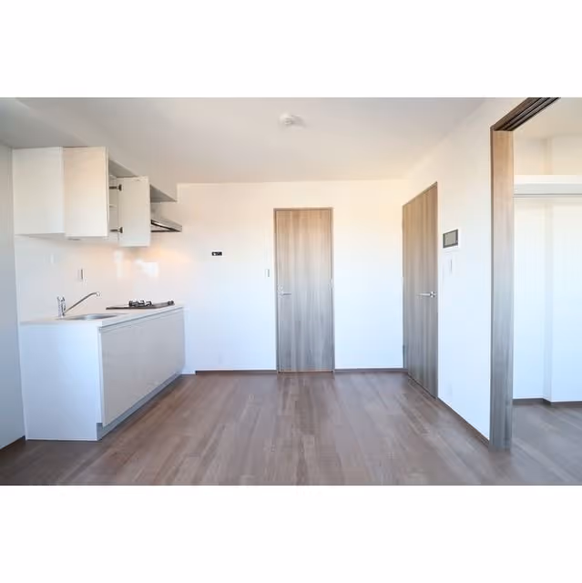This 1LDK apartment offers 26㎡ of efficient living space on the 5th floor of a newly constructed, five-story building completed in 2025. The layout provides a clear separation between the bedroom and living/dining area, maximizing privacy and comfort within a compact footprint. Large windows invite natural light into the main living space, creating a bright and welcoming atmosphere. The modern design ensures practicality, with thoughtful storage solutions and contemporary fixtures throughout. As a top-floor residence, it benefits from enhanced quiet and a sense of openness. Standard initial costs apply for moving in.